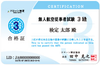 9時間のシミュレーション実技と1時間の実機による実技で上記の「無人航空従事者」終了認定書が取得できます。